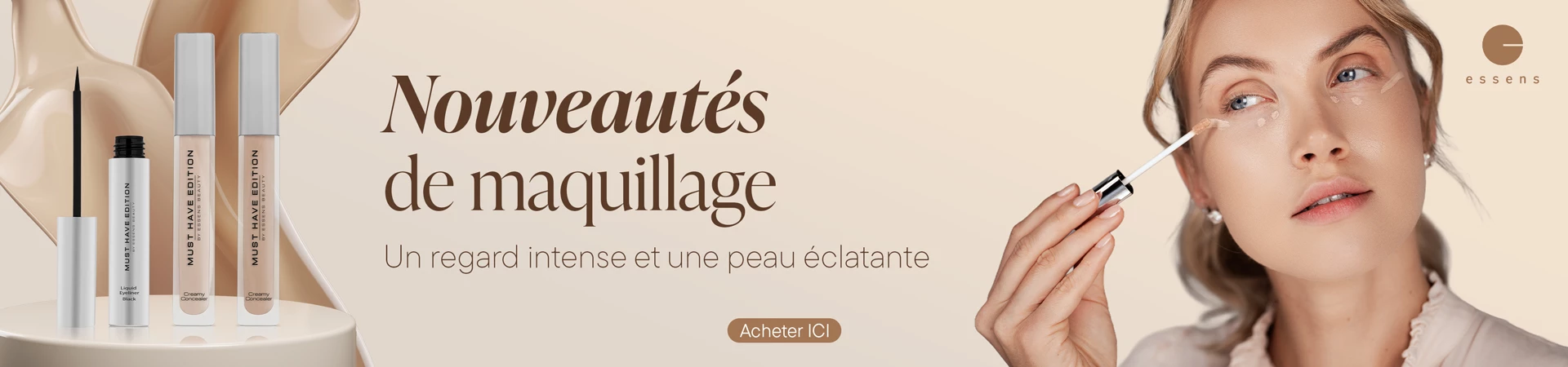 Lire la suiteChacun d`entre nous souhaite avoir une peau saine, fraîche et naturellement belle. Avec les cosmétiques décoratifs d`ESSENS, vous avez le contrôle total de votre look - du look discret de tous les jours au maquillage de soirée qui enchantera votre entourage. Grâce à la large gamme de produits, vous pouvez laisser transparaître votre personnalité, jouer avec les couleurs et expérimenter en fonction de votre humeur et des tendances du moment....